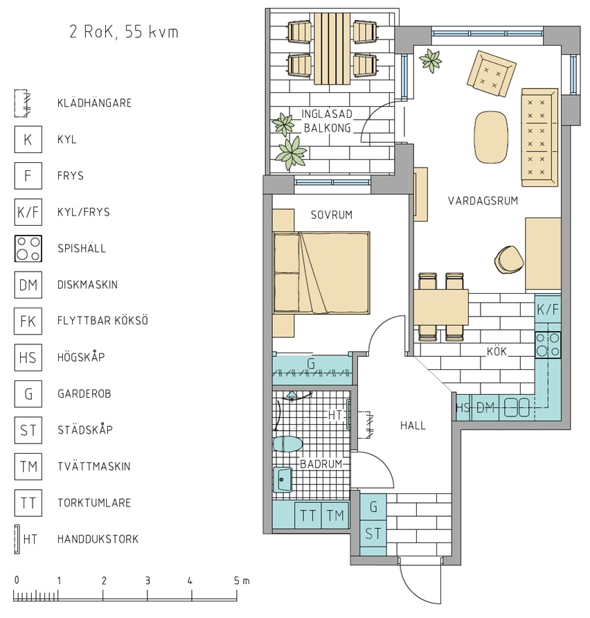 - 48 st 2 rok, ca 55 kvm, med inglasad balkong