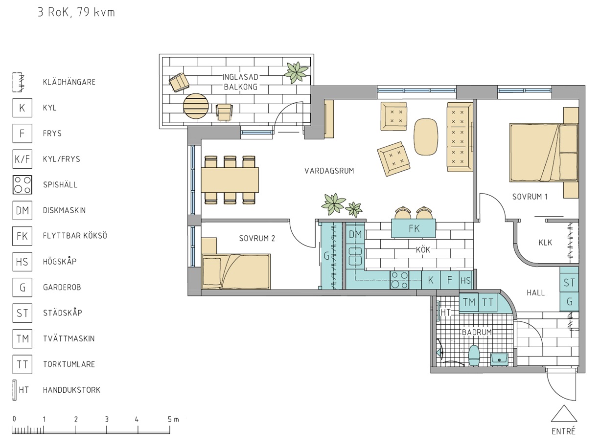 - 48 st 3 rok, ca 79 kvm, med inglasad balkong